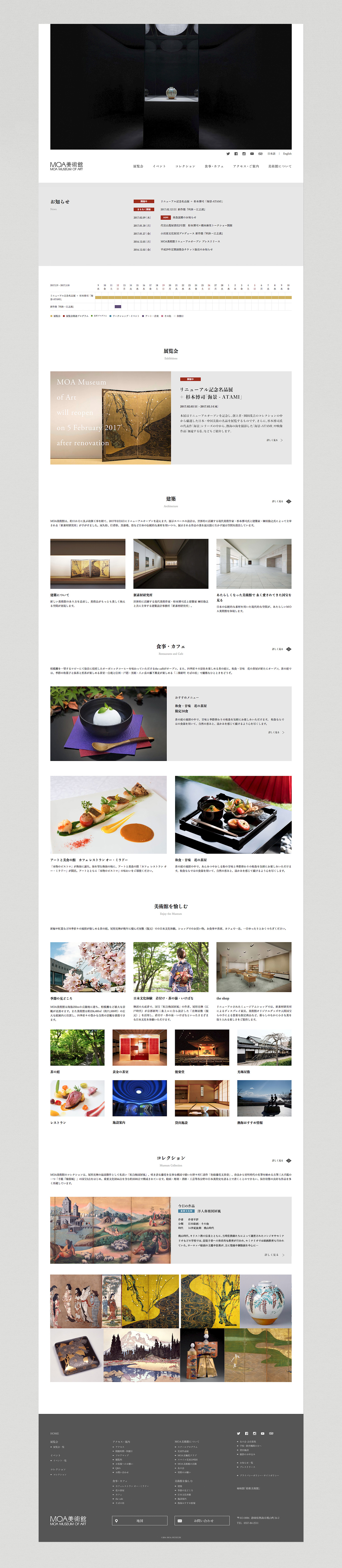 MOA美術館オフィシャルウェブサイト。ディレクション・ウェブデザインを担当。