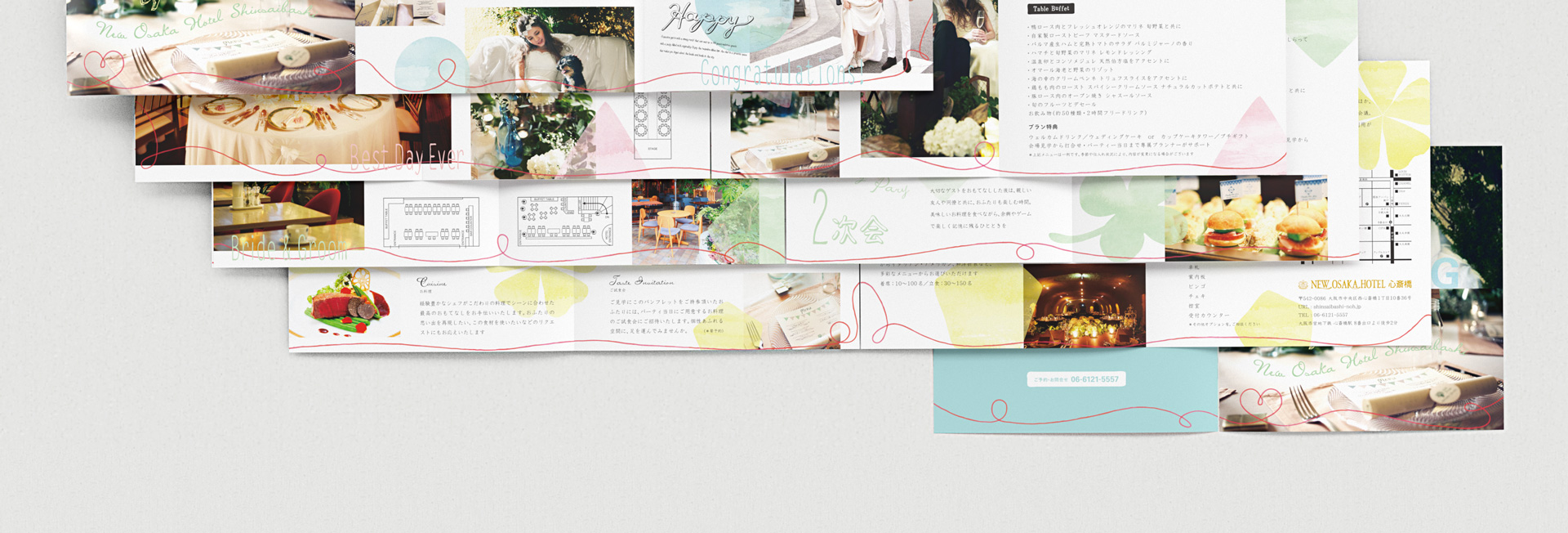 大阪アメリカ村にあるホテルウェディングホールのパンフレット。アートディレクション・グラフィックデザイン・文章を担当。