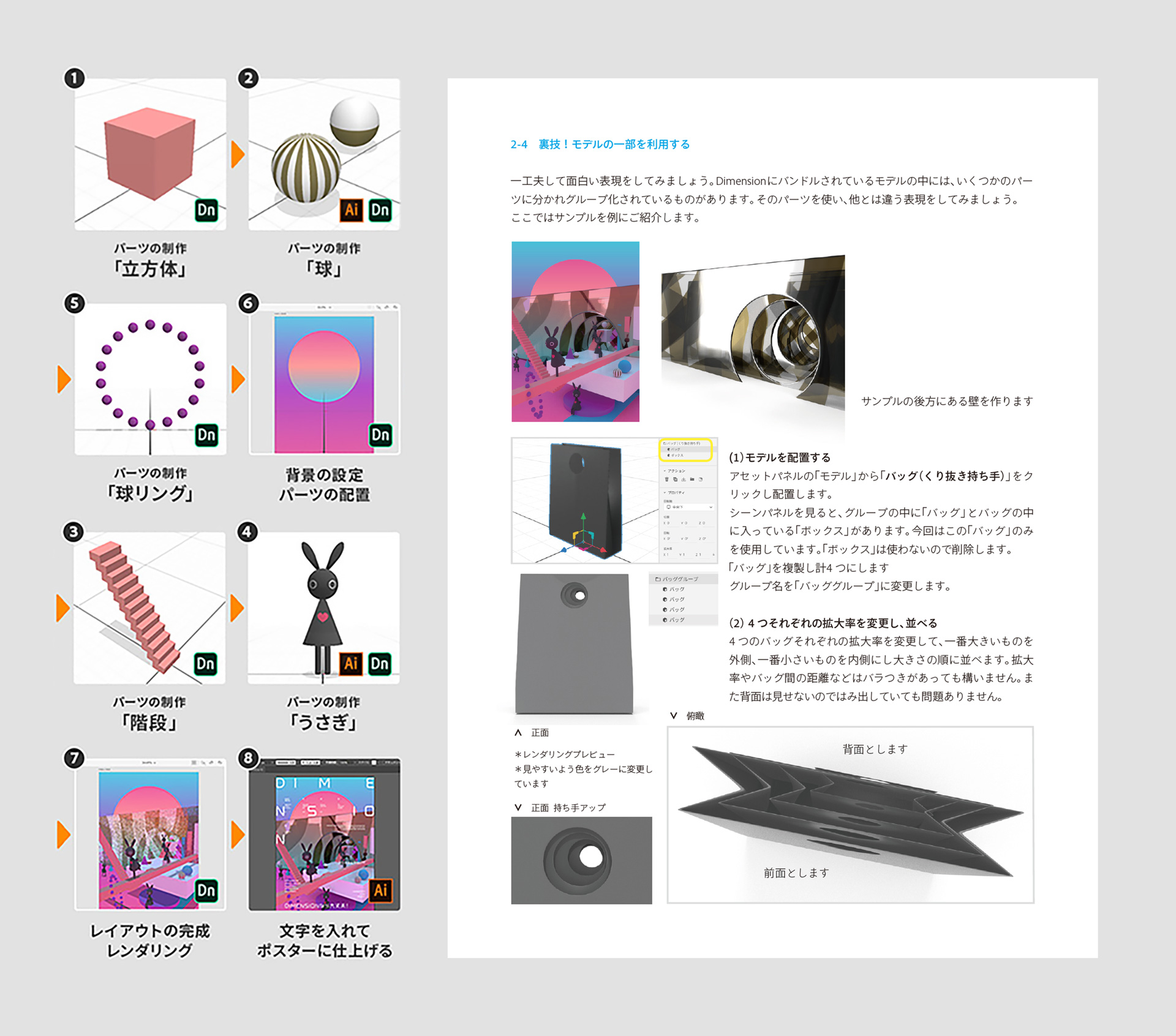 誰でも簡単に3DCG制作ができる Adobe Dimension CC のチュートリアル。Adobe公式サイトに掲載されています少し工夫を加え新しい表現の可能性を提案しています。