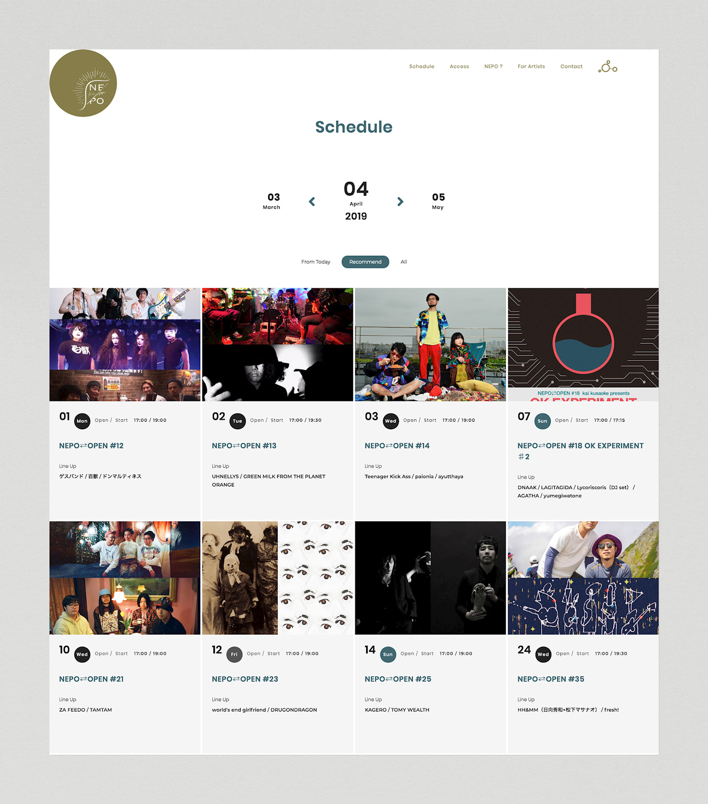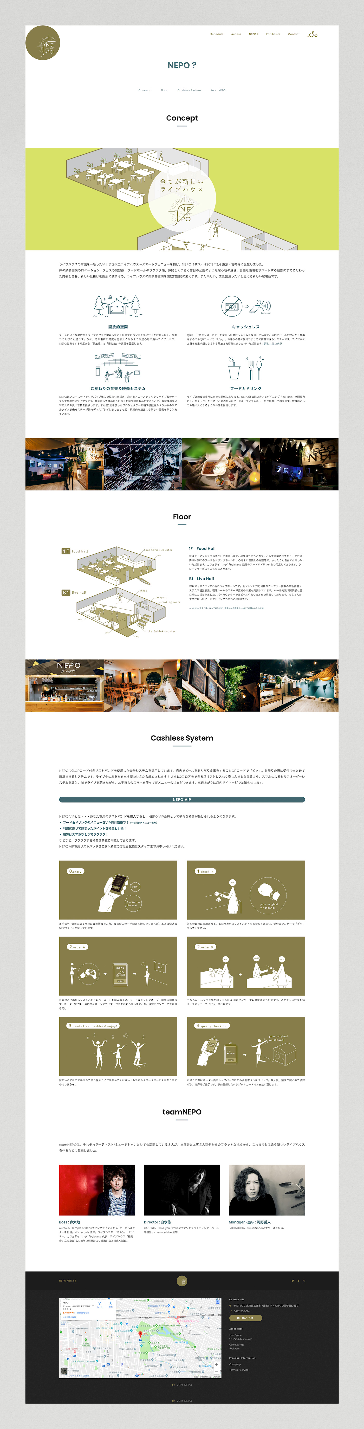 次世代型ライブハウス「NEPO」のオフィシャルウェブサイト。ディレクション・ウェブデザイン・ウェブコーディング・文章・写真を担当。